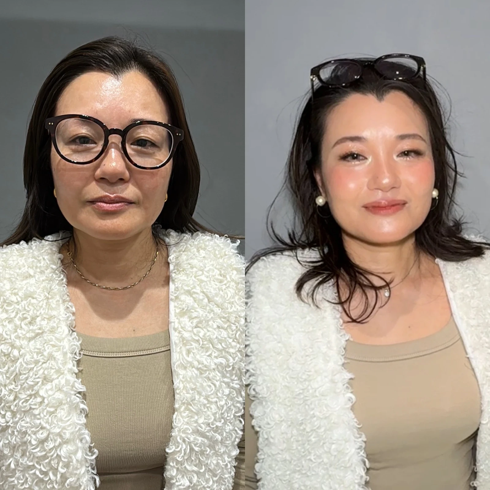 YouTubeを見ても、若い子のメイクになってイタイ感じになったり、午後になったらシワがただただ目立つだけのメイクになっていたのですが、ゆかさんのメイクでシワも目立つことなく、肌ツヤがよく、生き生きとした表情になっています。